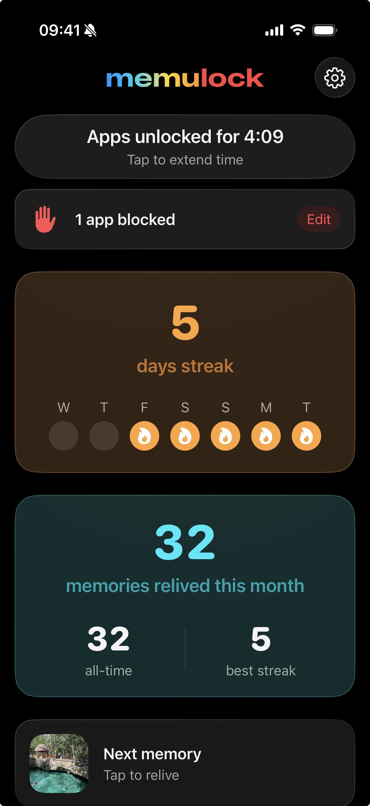 Hi, I'm Damir Stuhec, the solo developer behind memu lock. I built it after noticing how easy it was to spend hours looking at other people's lives while almost never revisiting my own photos. I wanted a screen time app that did more than block. I wanted one that gave something back.